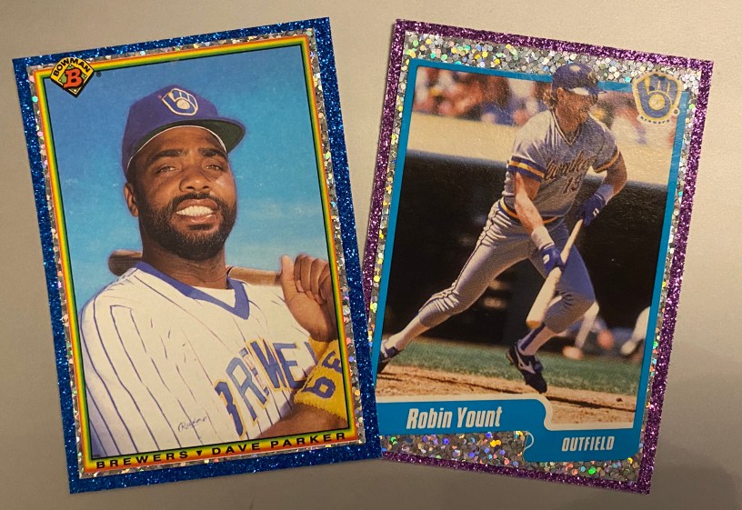 The 1990 Bowman Silver/Blue Glitter 1/1 Dave Parker absolutely dazzles in hand and is my first art card of Cobra as a Brewer.