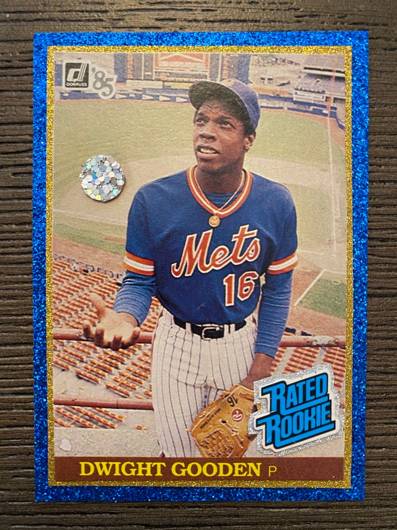 I wanted to do more than just upgrade the border. Two other additions I made were the “Rated Rookie” logo from a different player and the glitter added to the baseball in mid-air. This was a time in young Doc’s career where everything he touched turned to gold. I originally made the ball gold to reflect Doc as Midas, but ultimately I decided silver looked better.
