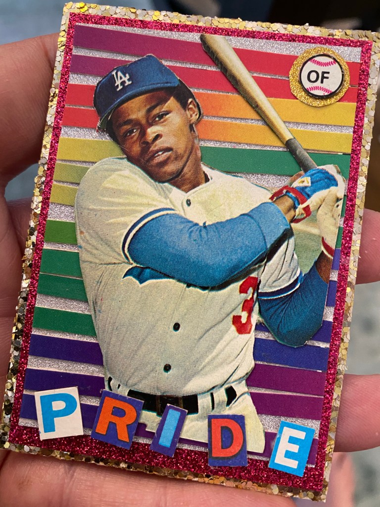 When the glue dried, I toyed with adding “SOURCE” to the top of the card, as in “SOURCE OF PRIDE.” Instead I left the card alone. I felt like this was already the best card I’d ever made: 1978 Topps Glenn Burke “PRIDE” 1/1.