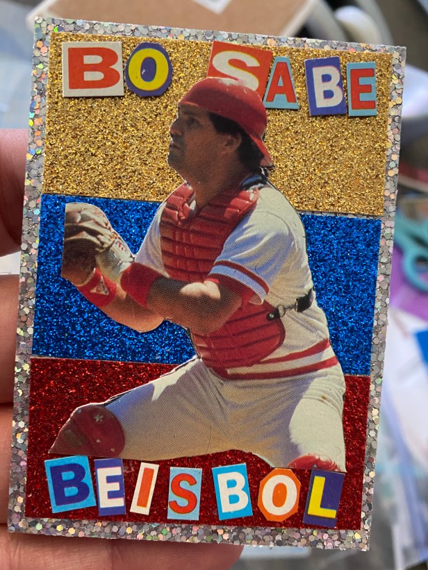 The background colors pay tribute to Bo’s native Venezuela, and the caption (in English) reads “BO KNOWS BASEBALL.”