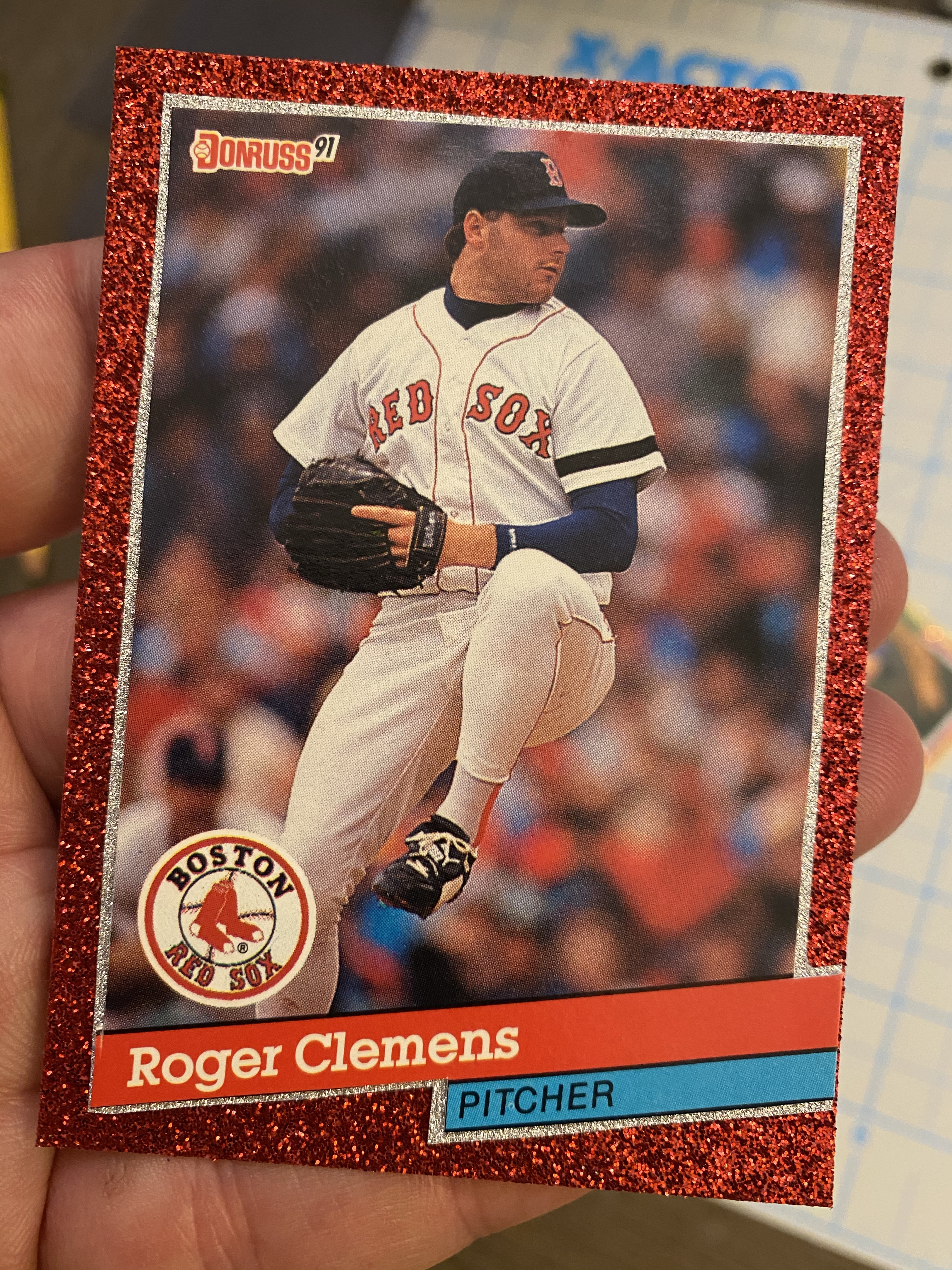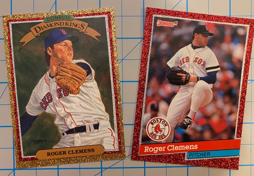 I was up early yesterday and busted open a rack pack of 1991 Donruss. The pack was LOADED!! Okay, letโs be honest. No card was worth more than 10 cents. Still, I pulled nearly every big star I could think of, including two different cards of Roger Clemens.