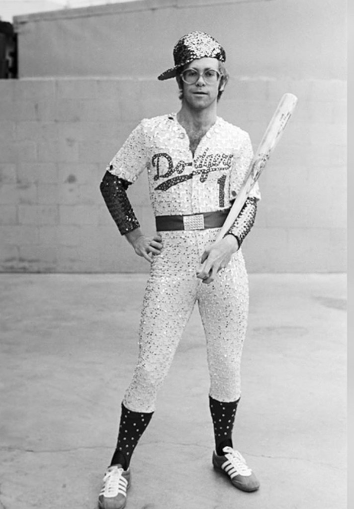 After work I was scrolling thru my social media feed and saw someone had posted this great image of Elton John from his 1975 concert at Dodger Stadium. The wheels started spinning. Really was there anyone more made for a glitter card than Sir Elton?