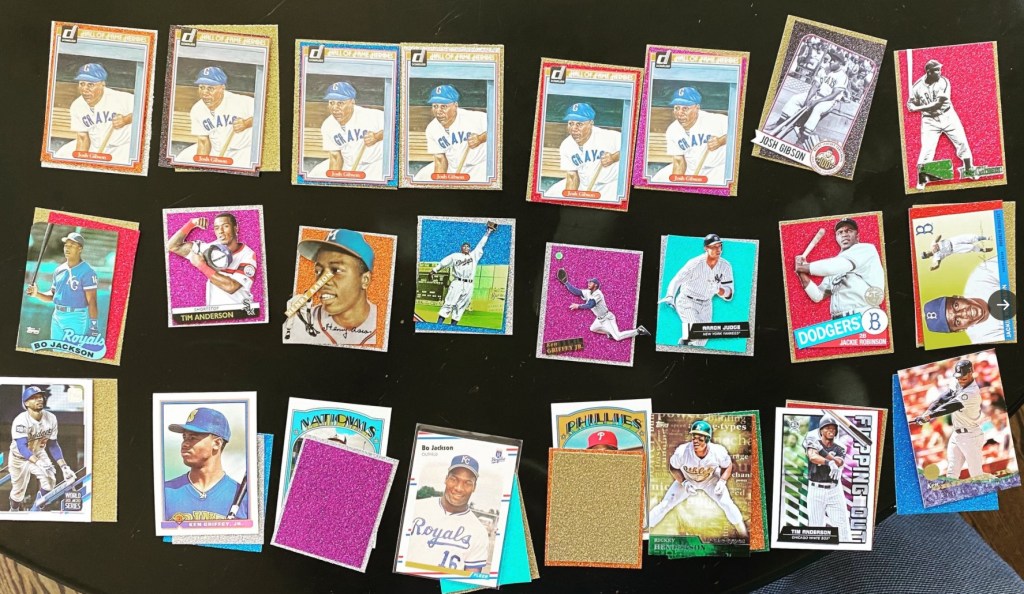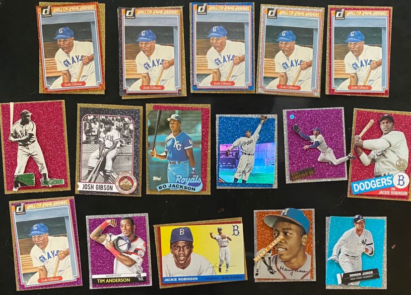 Step one was to find some cards in my collection to use for the workshop. I definitely wanted each participant to be able to make a Josh Gibson card, but I also wanted to mix in some other iconic players and (hopefully) a dose of more modern superstars. I went with exclusively Black ballplayers to highlight the very rich history of Black baseball, from the Negro Leagues to the modern game.