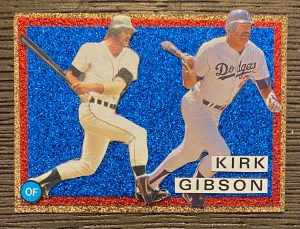 Kirk Gibson Two-Team WS Legend. $30 suggested donation to Kirk Gibson Foundation. Add $20 for hand-painted Gibby top loader.