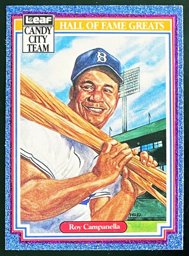 1987 Leaf “Candy City” Roy Campanella. Suggested $30 donation to DC Grays youth baseball team.